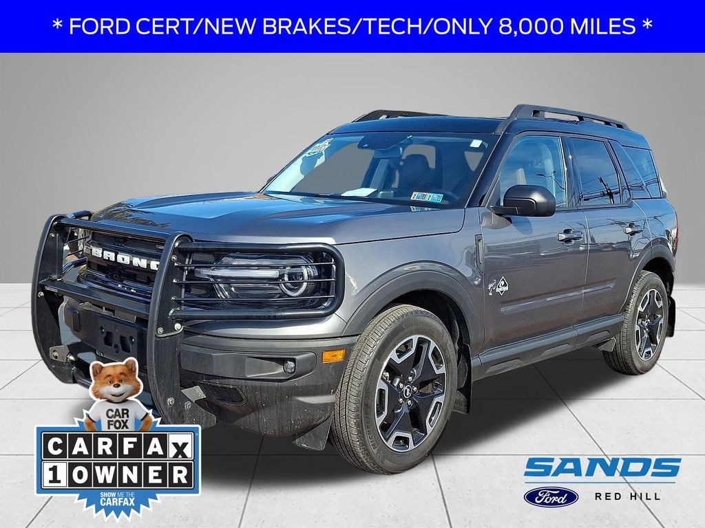 YOU ARE LOOKING AT A VERY RELIABLE AND AFFORDABLE 2023 FORD BRONCO SPORT OUTER BANKS 4WD W/ ONLY 8K MILES!!!! YOU RECEIVE THE BALANCE OF THE FACTORY WARRANTY "PLUS" A 3MTH/4,000 MILE BLUE CERTIFIED WARRANTY!!!! 1 OWNER!!!!! CLEAN CARFAX!!!! SANDS MARKET BASED PRICING, NEW PA STATE INSPECTION. IN ADDITION, THE CARBONIZED GRAY EXTERIOR W/ EBONY/ROAST BROWN LEATHER INTERIOR IS EXTREMELY SOUGHT AFTER....ESPECIALLY IN THE OUTER BANKS TRIM LEVEL!!!! EQUIPMENT INCLUDES: LEATHER INTERIOR, TECH PACKAGE ($1,285 UPGRADE), UPGRADED ALUMINUM WHEELS, PAINTED SHADOW BLACK ROOF ($500 UPGRADE), BLACK ROOF RACK SIDE RAILS, FRONT BRUSH GUARD (CAN BE REMOVED IF NOT DESIRED), FORD CO-PILOT360 ASSIST+ ($895 UPGRADE), SYNC3 SOUND SYSTEM W/ 8" SCREEN, REAR PARKING SENSORS, 8 WAY POWER SEAT, 6 WAY PASSENGER POWER SEAT, HEATED FRONT SEATS, LED FOG LAMPS, REARVIEW CAMERA, UPGRADED BANG AND OLUFSEN SOUND SYSTEM W/ 10 SPEAKERS, REMOTE KEYLESS ENTRY, POWER GLASS HEATED MIRRORS, AND MUCH MORE!!!! BEST OF ALL, WE SPENT OVER $1,400 IN RECONDITIONING...INCLUDING NEW REAR BRAKES AND TIRES AND ARE GOOD AS WELL ...MONEY YOU WILL NOT HAVE TO SPEND!!!! AGGRESSIVE FINANCING RATES ARE AVAILABLE AS WELL. GREAT VALUE!!!! LET SOMEONE ELSE ABSORB ALL THE DEPRECIATION OF A NEW CAR AND BUY PRE-OWNED!!!! JUST REDUCED!!!! FOR MORE DETAILS, PLEASE CONTACT OUR INTERNET DEPARTMENT FOR OUR SPECIAL INTERNET ONLY PRICING!!!! SANDS MARKET BASED PRICING.