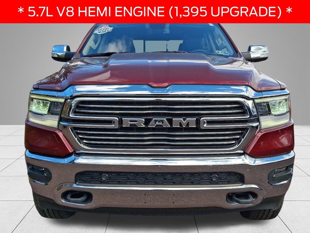 YOU ARE LOOKING AT A VERY RELIABLE AND AFFORDABLE 2022 RAM 1500 LARAMIE CREW CAB 4WD W/ 97K MILES!!!! 1 OWNER!!!!! CLEAN CARFAX!!!! DIESEL ENGINE...SAVE AT THE PUMP!!!!! SANDS MARKET BASED PRICING, NEW PA STATE INSPECTION. IN ADDITION, THE DELMONICO RED PEARLCOAT EXTERIOR W/ BLACK LEATHER INTERIOR IS EXTREMELY SOUGHT AFTER....ESPECIALLY IN THE LARAMIE TRIM LEVEL!!!! EQUIPMENT INCLUDES: 5.7L V8 HEMI ENGINE ($1,395 UPGRADE), LEATHER TRIMMED BUCKET SEATS ($895 UPGRADE), LARAMIE LEVEL 1 EQUIPMENT GROUP ($1,695 UPGRADE), 20" PREMIUM POLISHED WHEELS (1,295 UPGRADE), U-CONNECT 4C NAV W/ 12 INCH ($2,095 UPGRADE), PANORAMIC SUNROOF ($1,495 UPGRADE), LEATHER INTERIOR HEATED/COOLED SEATS, REARVIEW CAMERA, ANTI-SPIN DIFFERENTIAL REAR AXLE ($495 UPGRADE), REMOTE KEYLESS ENTRY, AND MUCH MORE!!!! BEST OF ALL, WE SPENT OVER $3.400 IN RECONDITIONING INCLUDING A BRAND NEW SET OF TIRES AND BRAND NEW FRONT BRAKES AS WELL...MONEY YOU WILL NOT HAVE TO SPEND!!!! WE HAVE TO BE VERY AGGRESSIVE ON NON-FORD PRODUCT, IN ORDER TO GIVE YOU A REASON TO BUY HERE!!!! AGGRESSIVE FINANCING RATES ARE AVAILABLE AS WELL. GREAT VALUE!!!! LET SOMEONE ELSE ABSORB ALL THE DEPRECIATION OF A NEW CAR AND BUY PRE-OWNED!!!! JUST REDUCED!!!! FOR MORE DETAILS, PLEASE CONTACT OUR INTERNET DEPARTMENT FOR OUR SPECIAL INTERNET ONLY PRICING!!!! SANDS MARKET BASED PRICING.